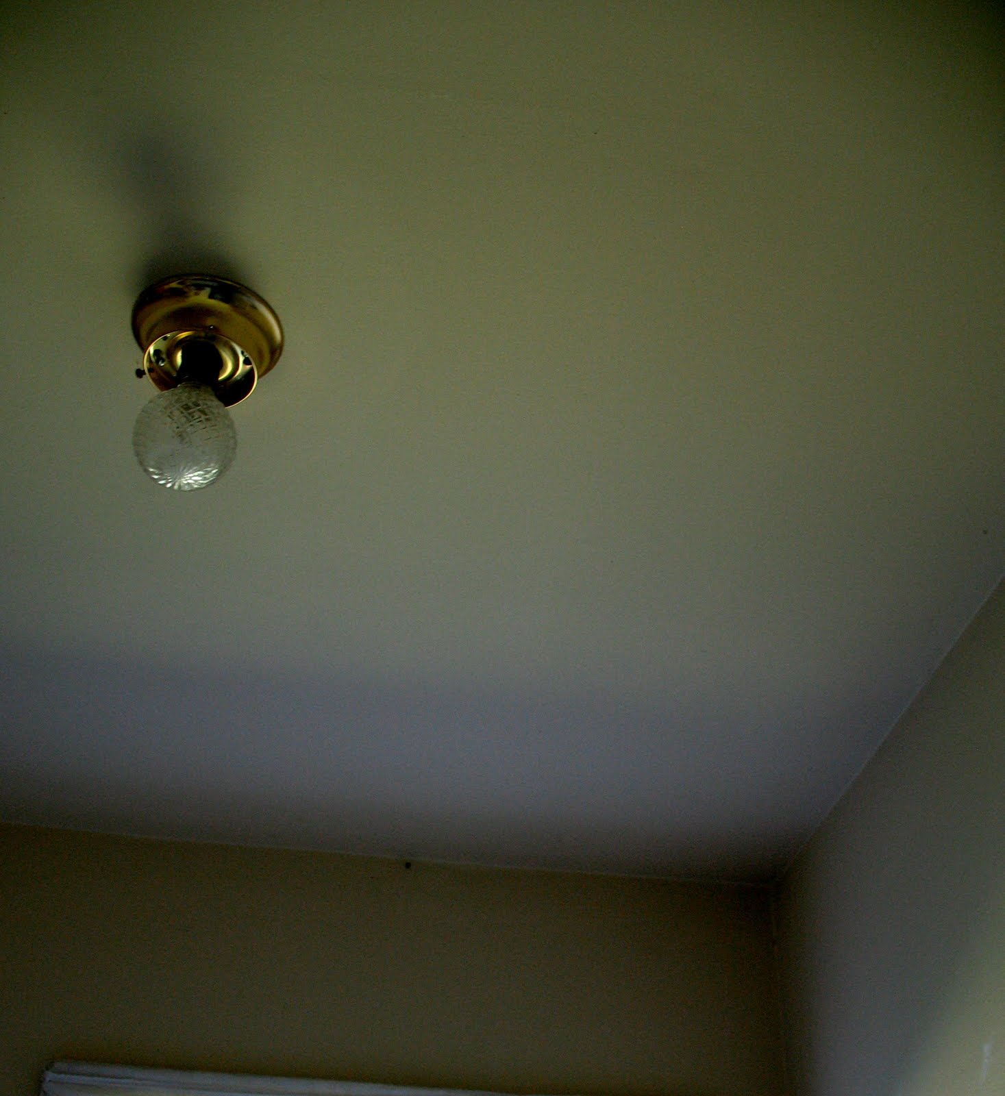 The old school of thought was that white walls are necessary when square footage is limited. But, dark colors actually add depth to small rooms. Painting a ceiling black actually helps a room feel taller and adds more character. And guess what? It doesn't seem any darker in my little bathroom. I LOVE it! The chandelier came from walmart (I bought the last two last year including the floor model for $30 each) I have a soffet (is that how you spell it?) around the shower, so I painted about 12" down from the ceiling also. My shower curtain is an old sheet (we'll save that tutorial for another day) :). I think I might replace it soon with a white ruffled one.