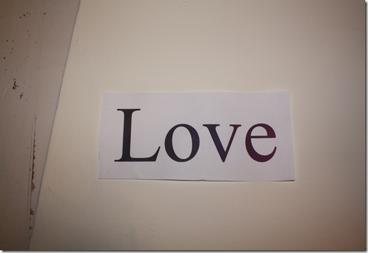 Next, print out the word love in Microsoft word using the font, and size you prefer, and cut it out.